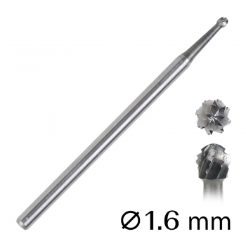 Karbidinis antgalis su skersiniais grioveliais – sfera su išilginiu vertikaliu pjūviu ir perforacija.