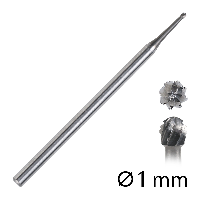 Karbidinis antgalis su skersiniais grioveliais – sfera su išilginiu vertikaliu pjūviu ir perforacija.